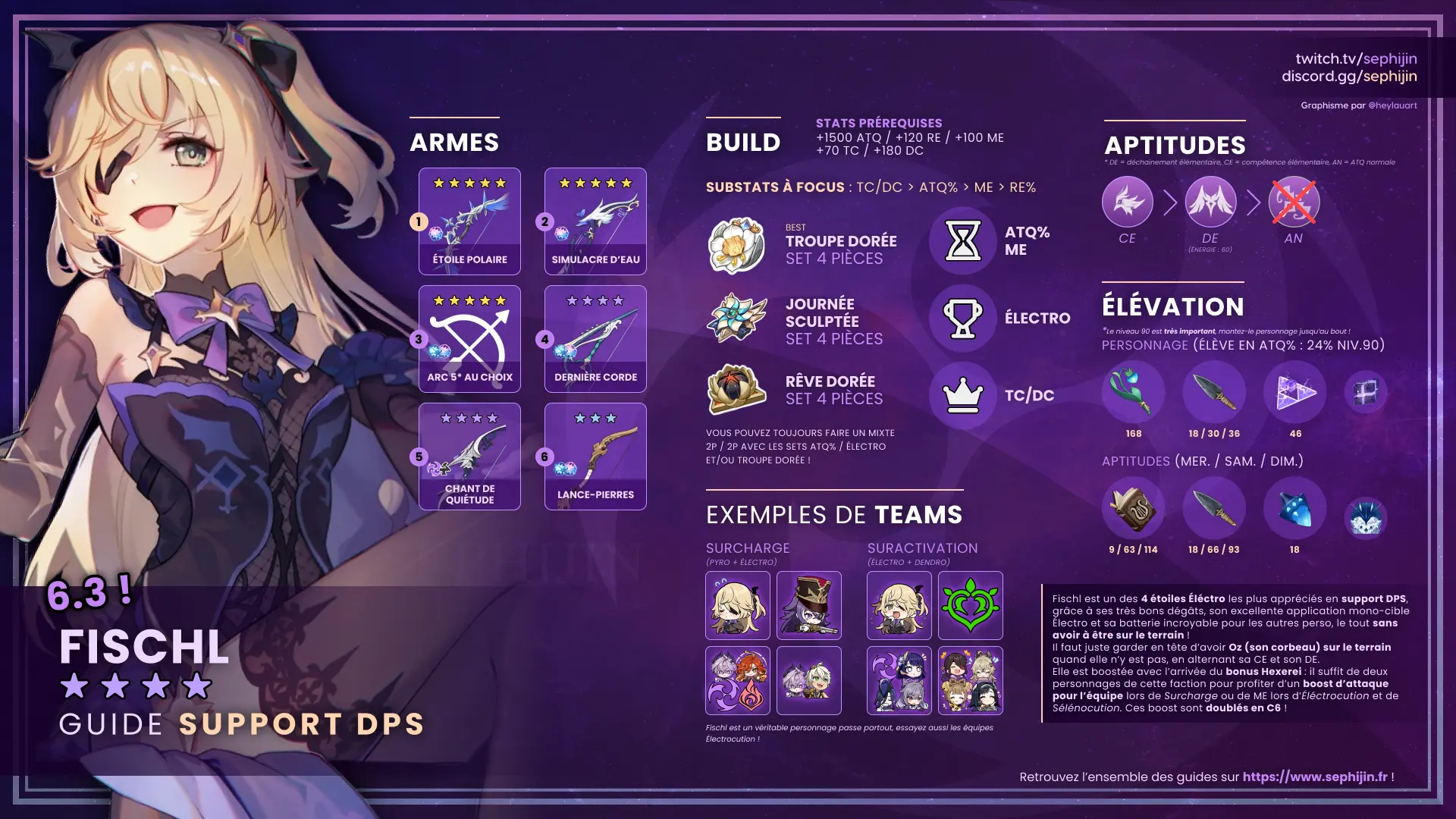 Tu as des questions sur Fischl ? Retrouve-moi du samedi au mercredi sur Twitch et n’hésite pas à me demander plus d’informations la concernant, je ferai ce qu’il faut pour te répondre. Tu peux également nous rejoindre sur Discord où tu retrouveras toute une communauté de joueurs de Genshin Impact, avec énormément d’entraide !