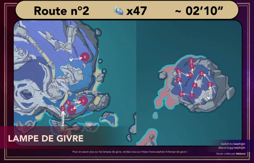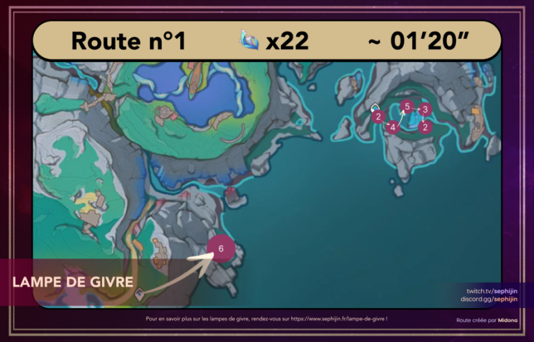 Petite note du créateur : « Les points bleus sont les produits trouvables en souterrain, et les points mauves sont les produits trouvables en surface ! »
