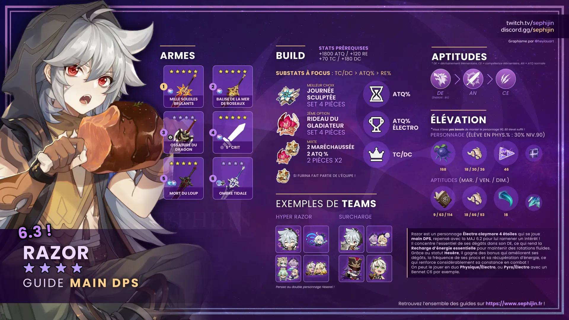Tu as des questions sur Razor ? Retrouve-moi du samedi au mercredi sur Twitch et n’hésite pas à me demander plus d’informations le concernant, je ferai ce qu’il faut pour te répondre. Tu peux également nous rejoindre sur Discord où tu retrouveras toute une communauté de joueurs de Genshin Impact, avec énormément d’entraide !
